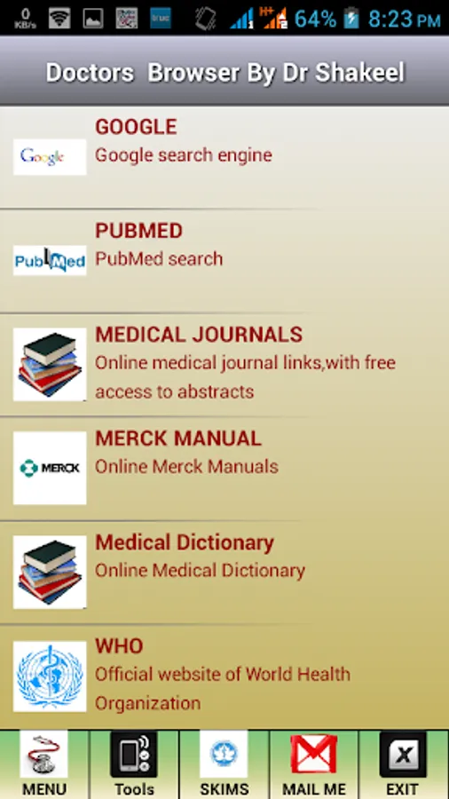 If you know about more relevant medical sites, please email me the links,so that i can embed them into my app.