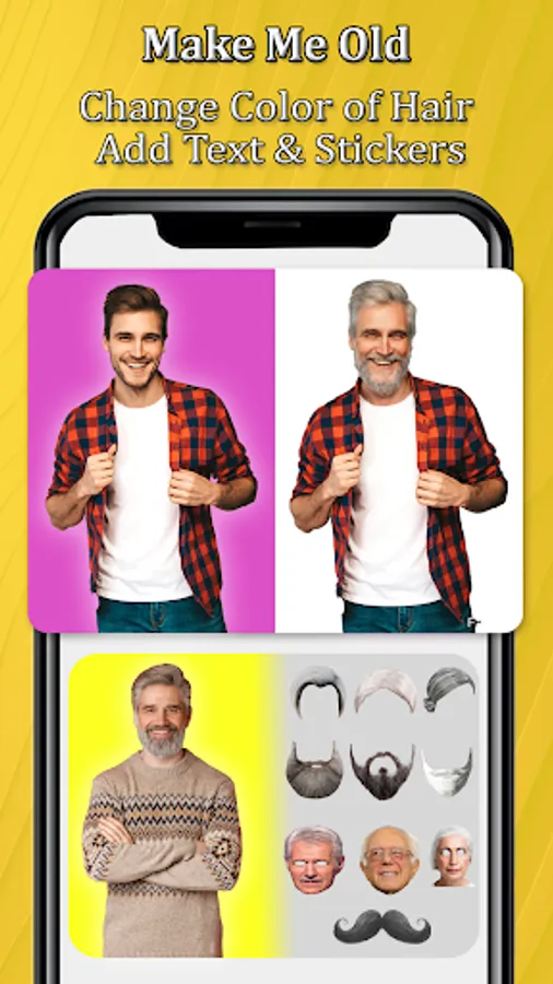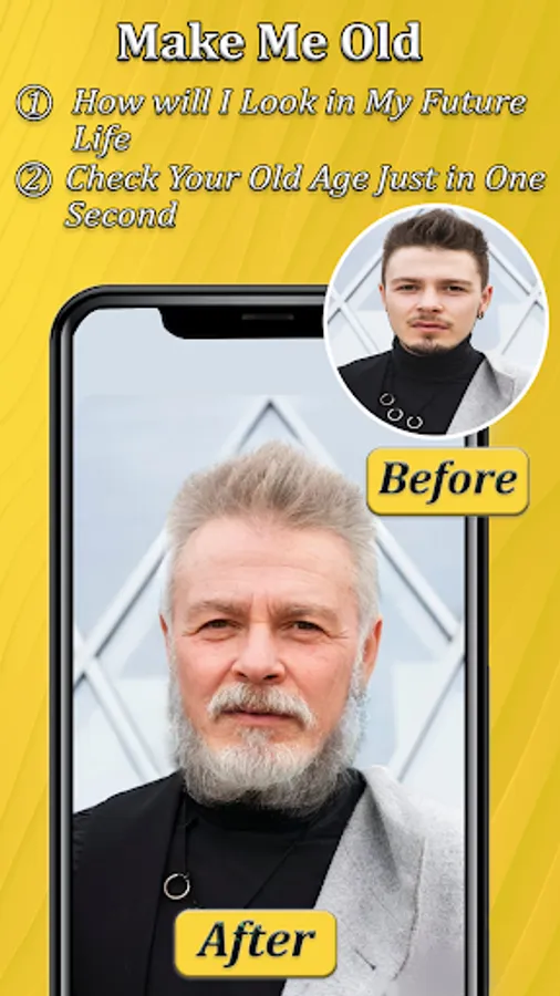 Face changer app young to old with Have you ever wondered how you'll look when you're old? With our Face changer app young to old, you can easily add realistic aging effects to your photos and see your future self by using Make me old app.