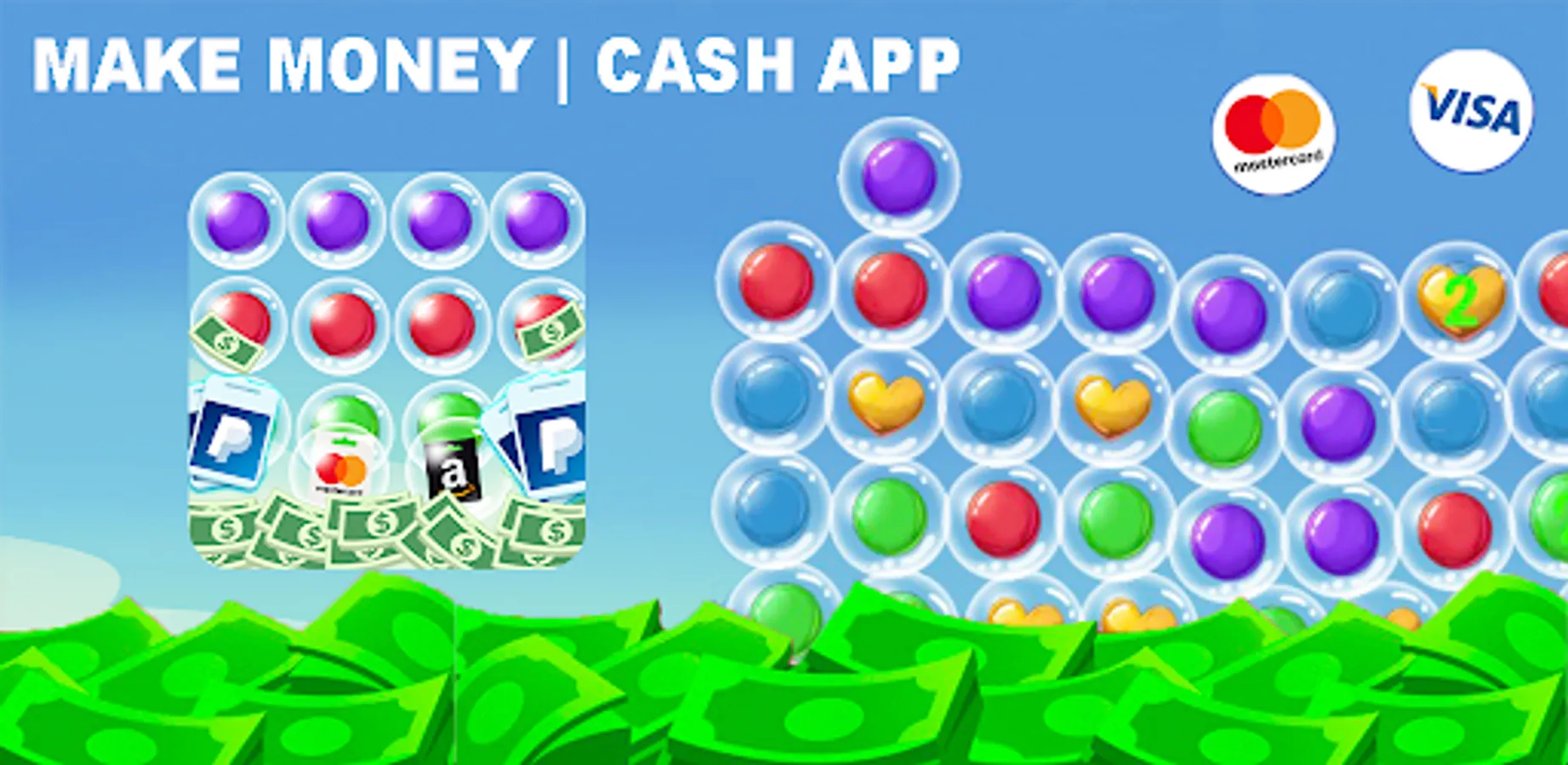Welcome to Bubble Pop Game! In this game, you can enjoy the fun of popping bubbles and have a chance to win cash rewards, redeem gift cards, PayPal cash, and various real prizes.