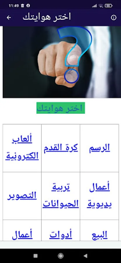 One of the biggest obstacles for beginners to work from the Internet or profit from the Internet is choosing the appropriate field for it, and here in this application we have included a group of areas related to hobbies and what you spend your time in is more related to age and academic level, although it is not important