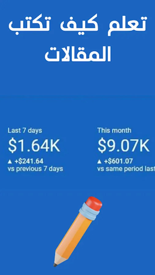 In this application of profit from the Internet and writing articles, you will learn how to write a successful article and publish it on your website to display ads from Google Adsense on the blog and obtain continuous monthly profits from writing articles