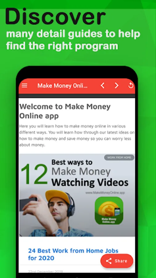 We built this app so an everyday person can learn how to make money online in various different ways in 2020. You will find guides & details to various programs and tools which can potentially help you make money online.