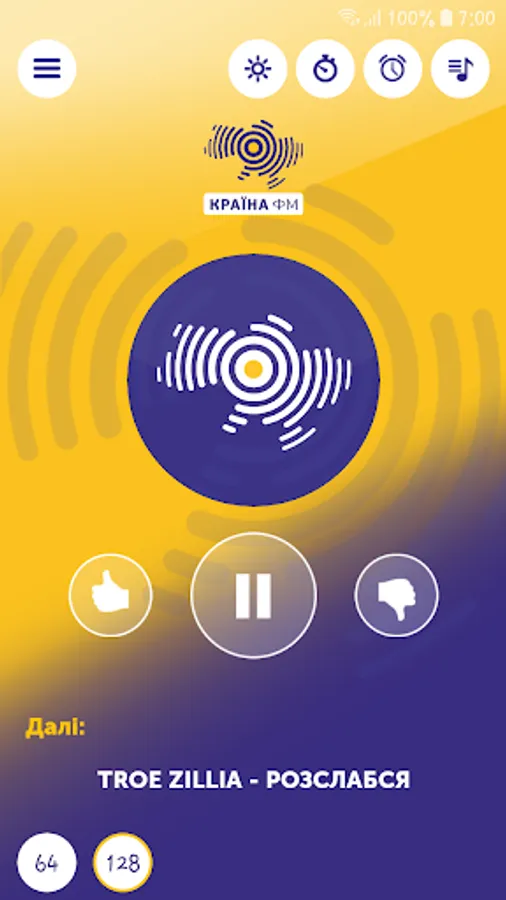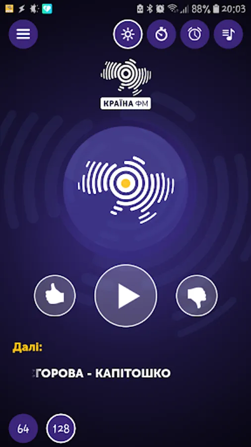 Kropyvnytskyi 100.5 FM, Nikolaev 98.8 FM, Poltava 98.7 FM, Sumy 100.8 FM, Khmelnitsky 100.1 FM, Nikopol 99.9 FM, Pavlograd 100.2 FM, Berdyansk 90.9 FM, Melitopol 99.6 FM, Bila Tserkva 107.2 FM, Voznesensk 107.9 FM, Voznesensk, 106.9 FM 6 FM, Zhashkov 105.9 FM, Uman 104.9 FM, Priluki 104.8 FM