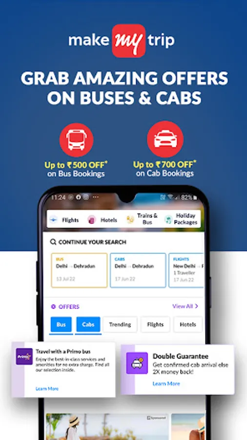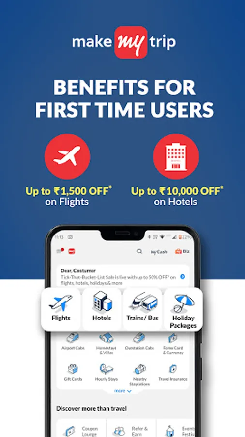 The MMT app serves as the best flight booking, hotel booking & bus booking app.