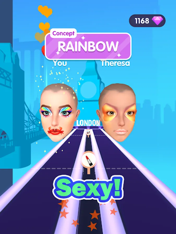 The best free game of the year has arrived! It's time to make up, impress everyone, and win the makeup battle of the century! The game has been viewed tens of millions of times on TikTok and has become a fashion trend. Dress up your character according to a specific theme to outwit your opponents on the runway. Ever wonder what it's like to walk the catwalk under world famous buildings? Now it is the perfect opportunity to show off your fashion sense and shine! You will choose new hair, eye makeup, lipstick, earrings and even accessories like sunglasses, barrettes for the girl. Some themes are about cosplay while others are about movies.