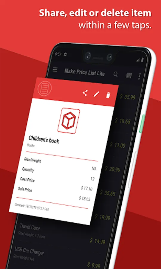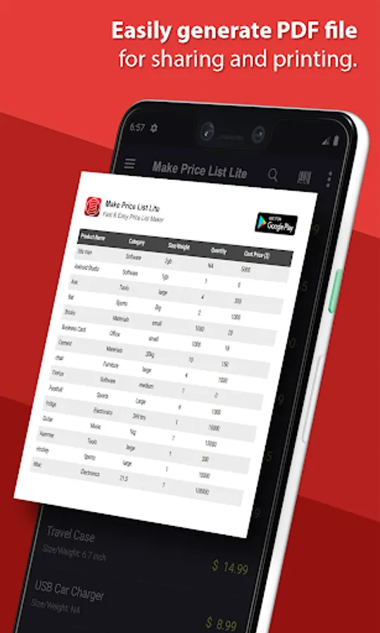 Make Price List Lite can store unlimited items and creates price lists, an efficient and productive part of your item sales and marketing.