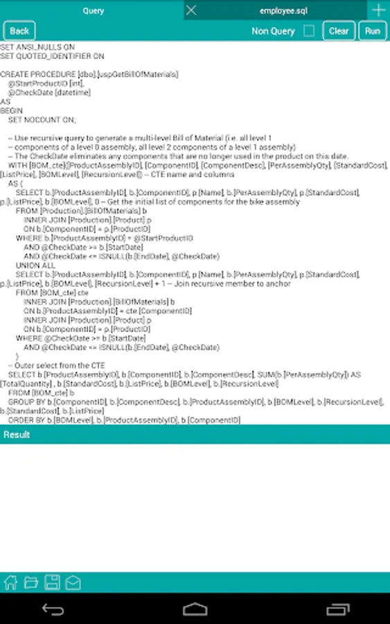 • Save queries to Android device and reuse.