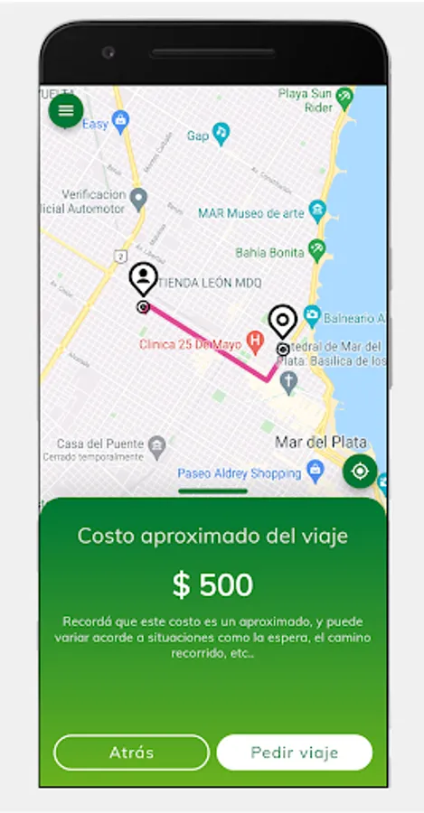 The app informs you of the mobile number, model, patent and color of the vehicle, as well as the name of the driver. Our drivers are all authorized by the Municipality of General Pueyrredón.