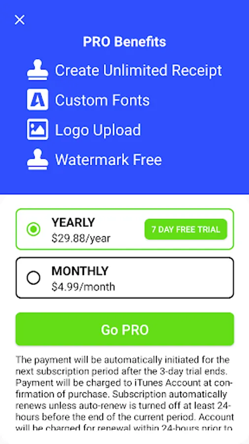 MakeReceipt is a "try before you buy" system. Try it today for FREE and make a FREE receipt. You can also make ANY of our receipt styles and see the receipt output. If you choose to become a member, the receipt watermark will be removed.