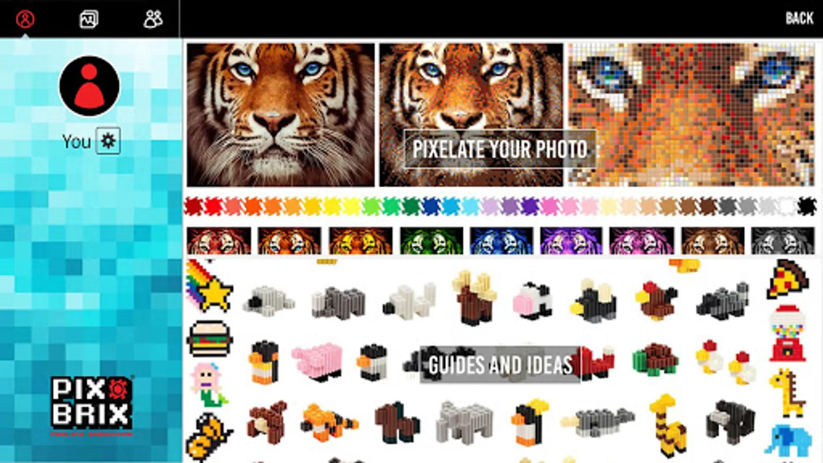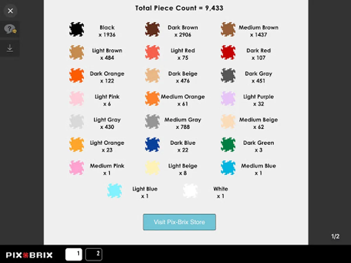 The Pix Brix photo pixelator allows the artist to size, crop, and pixelate their favorite images. The user is given a color piece count and section breakdown to build their own personal pixel masterpiece out of Pix Brix. Pixelate your loved ones, pets, musicians, celebrities, and athletes. Hang your creation in your home as pixel art or build someone a special gift. The question is, What Will You Pixelate?®