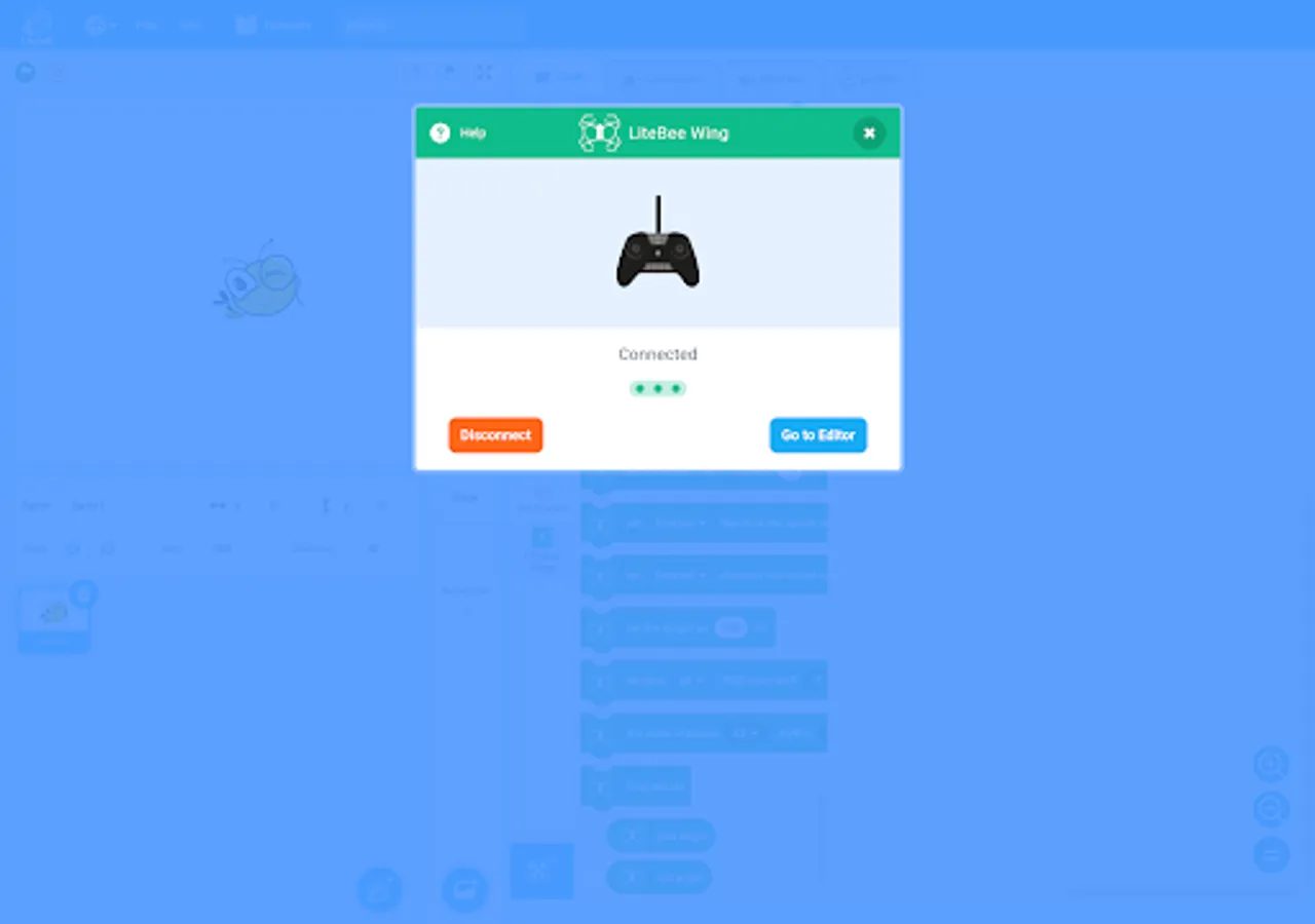 Litebeego is a UAV programming software, which establishes a connection with the aircraft through hot spots, drags the functional building blocks to write a set of programs, and can control the movement of the aircraft according to the program.