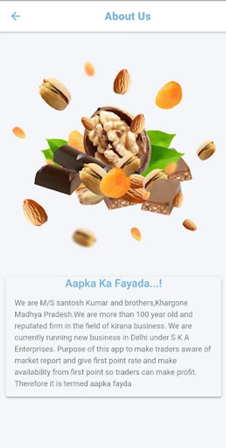 Purpose of this app to make traders aware of the market report and give the first point rate and make available from the first point so traders can make a profit. Therefore it is termed aapka fayda