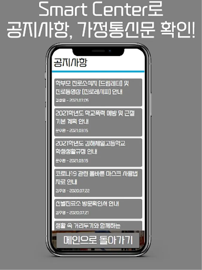 Through the Gimhae Jeil High School Smart Center, you can check notices and home correspondence, check student ID, check today's schedule and timetable, check meal schedules, write petitions at Jeil High School, and more!
