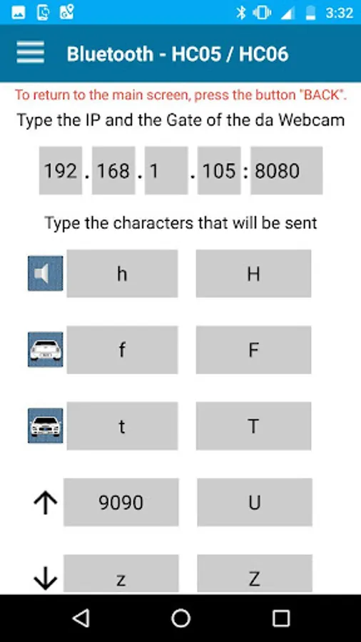 The new version of this app can be found at https://play.google.com/store/apps/details?id=com.cavalcante_fgc.joystick&hl=pt_BR .With this APP you can control your HC05 / HC06 device via bluetooth with a digital or analog system. The characters that will be sent are customizable. In addition, you can view the image of an IP Webcam in your APP for easy remote control.