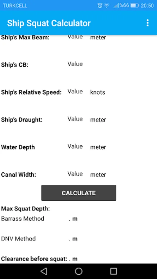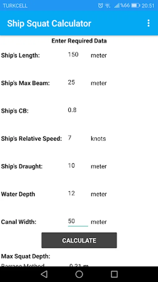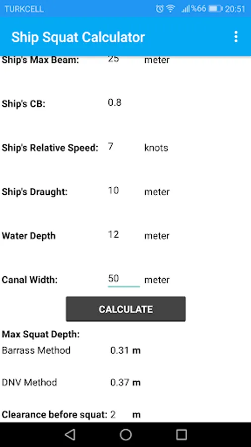 This software simply calculates under keel clearance/squat in confined waters. Two major calculation model taken; DNV and DR Barrass Method.