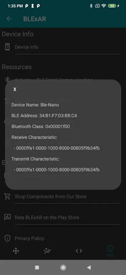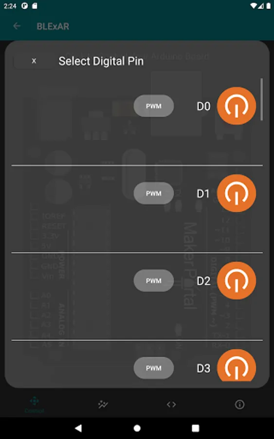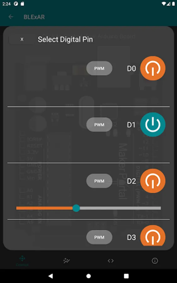 BLExAR is an integrated app that uses Bluetooth Low Energy to convert an Arduino board into an Android-compatible device. BLExAR allows the user to control all digital and analog pins on most Arduino-based boards using just a CC2541 (HM-10, AT-09, JDY-08, SH-M08) Bluetooth module.