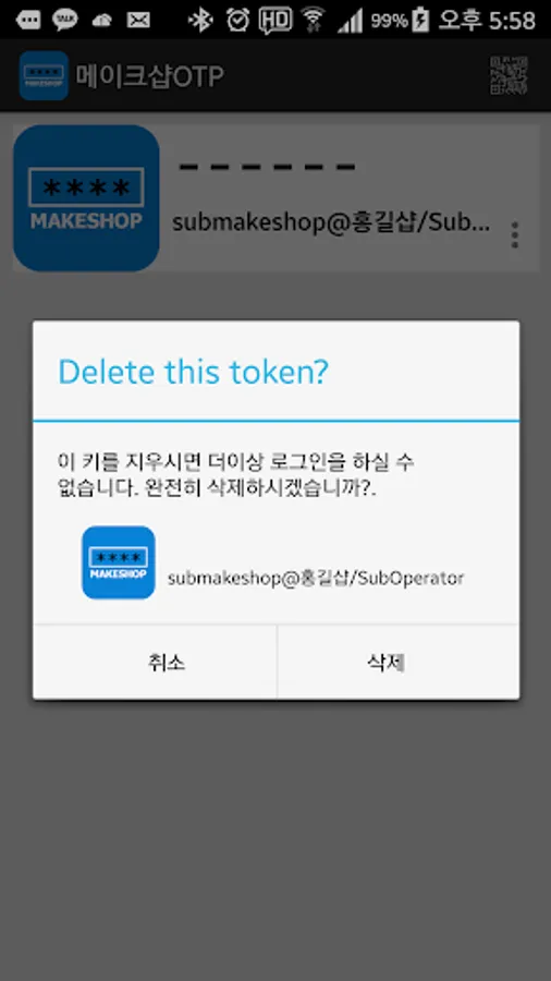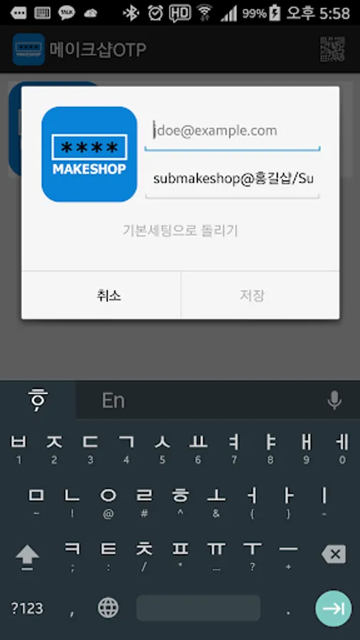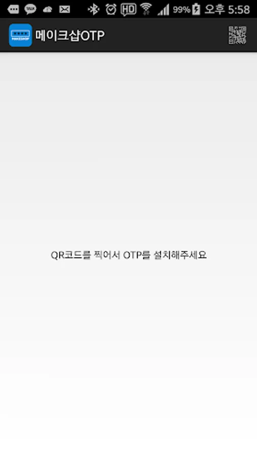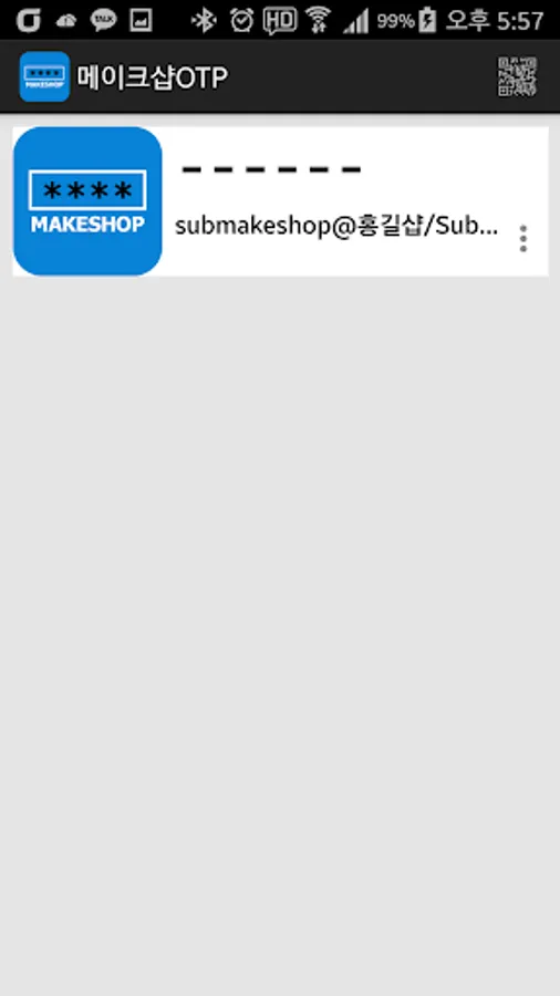 1. MAKESHOP OTP 다운로드 받아 실행하여, URL주소에서 정보를 입력한 후, QP코드를 찍습니다.