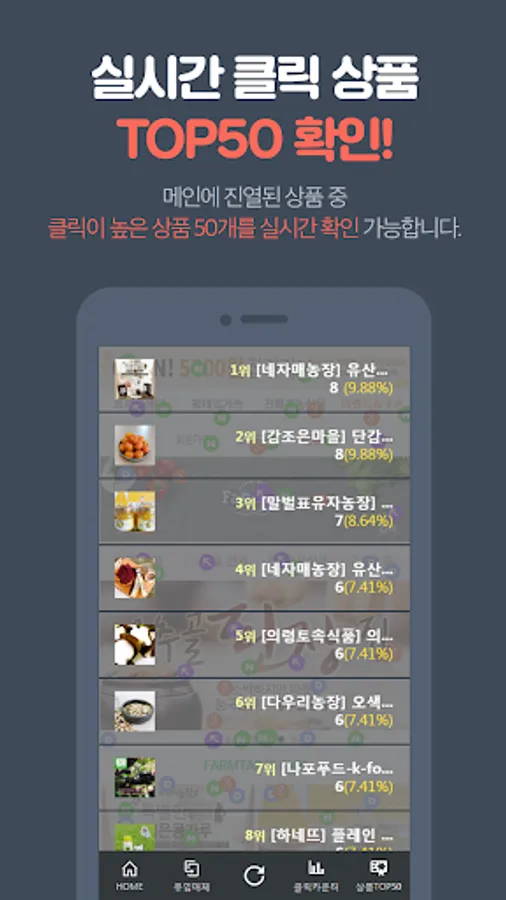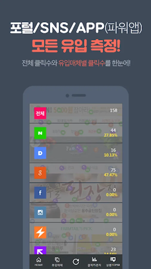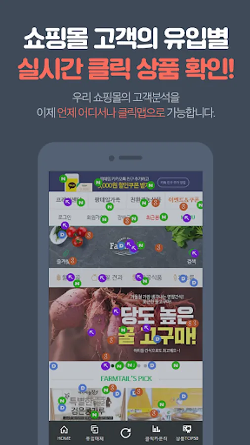 Using real-time click the Store Customers inflow analysis, product analysis, domain analysis, design analysis, you can see the results. Merchandise display position through the analysis, creative selection, and services to help make decisions about the products and regions by setting goals.