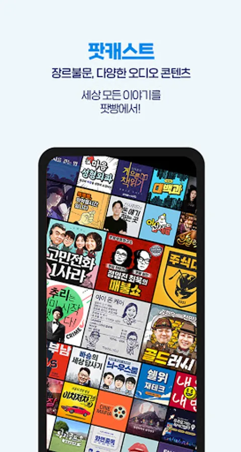 Podcasts of various genres such as culture, entertainment, current affairs, economy, language, sports, etc.
