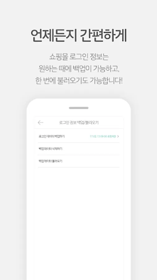 : You can back up your login information (locally stored in your mobile phone), and immediately call up your login information when you need it without input.