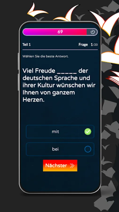 Test and Questionnaire is the best way to test your level in Grammar, Orthographe, Comprehension in German language, with a huge number of different questions on knowledge, for all levels with multiple choices.