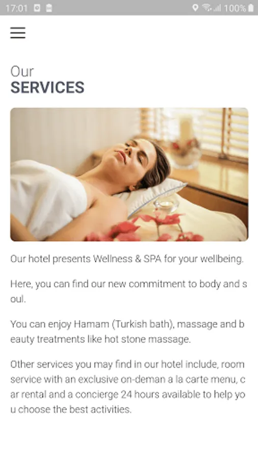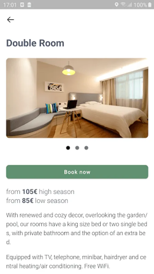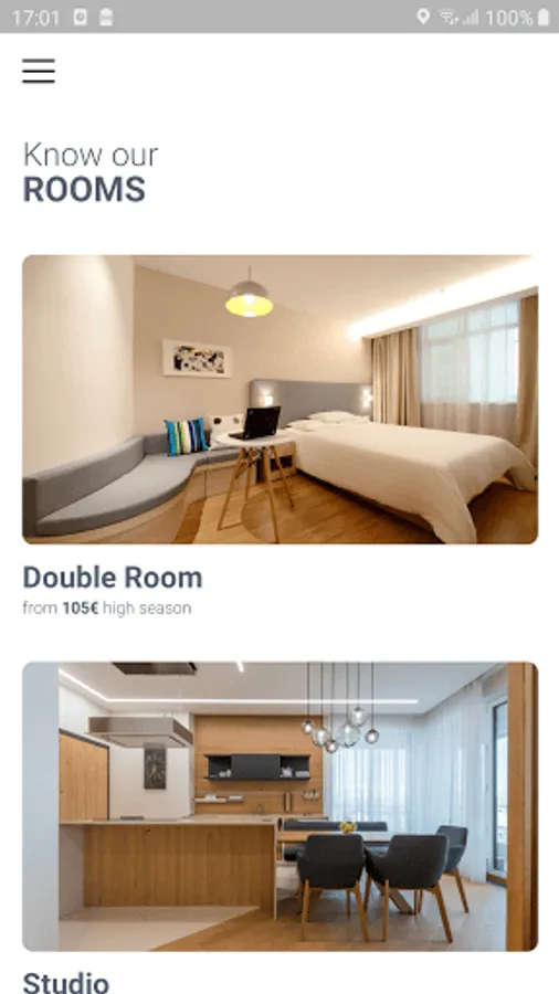 With this app you will be able to discover all the services and amenities that we have to offer, view the available rooms and contact us directly.