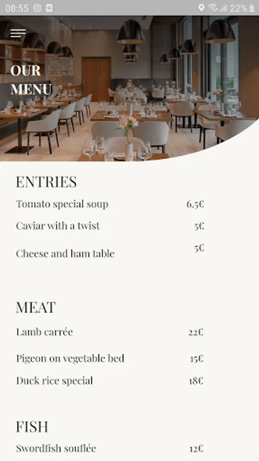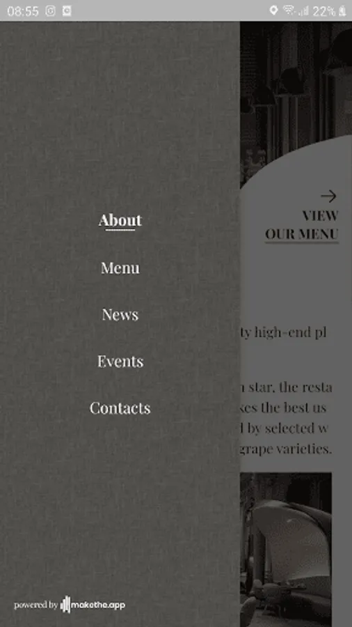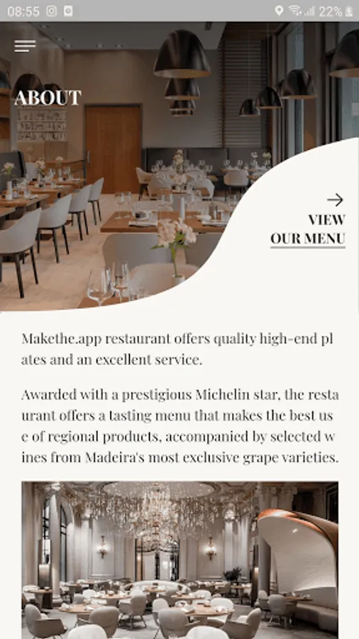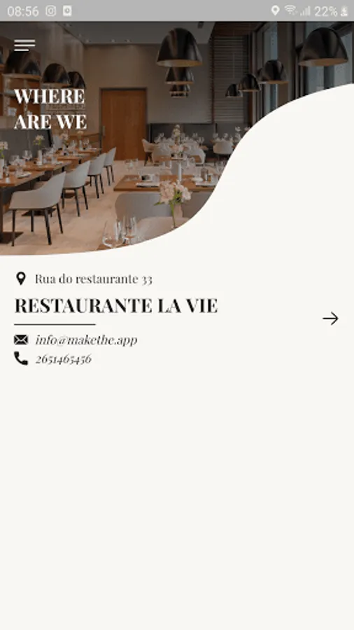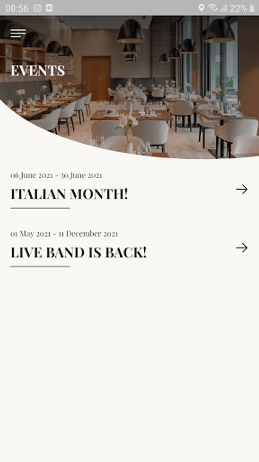 Also latest news and events that will host are shown and you can use the app to book a table in one of our restaurants!