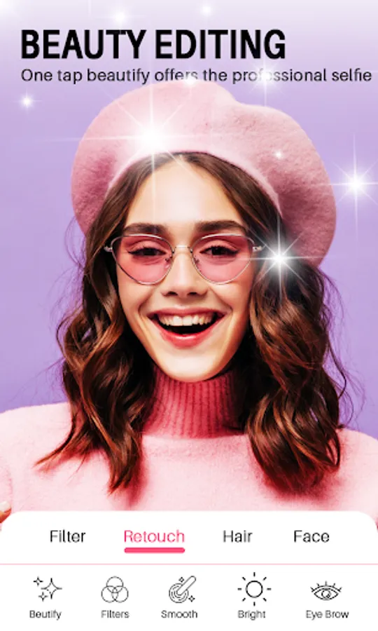 The app also features a wide range of face makeup styles, beauty rffects, professional & beautiful photos from natural to dramatic,