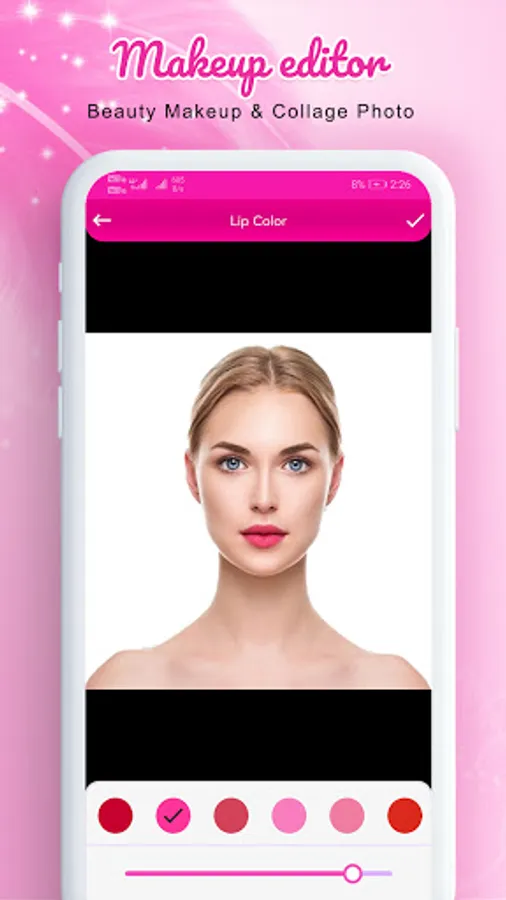 The user has the choice to change lips colour with lipstick colour selection. If for instance, you forgot to apply lipstick before taking the photo, you can easily edit the photo by applying a colour shade of choice to your lips.