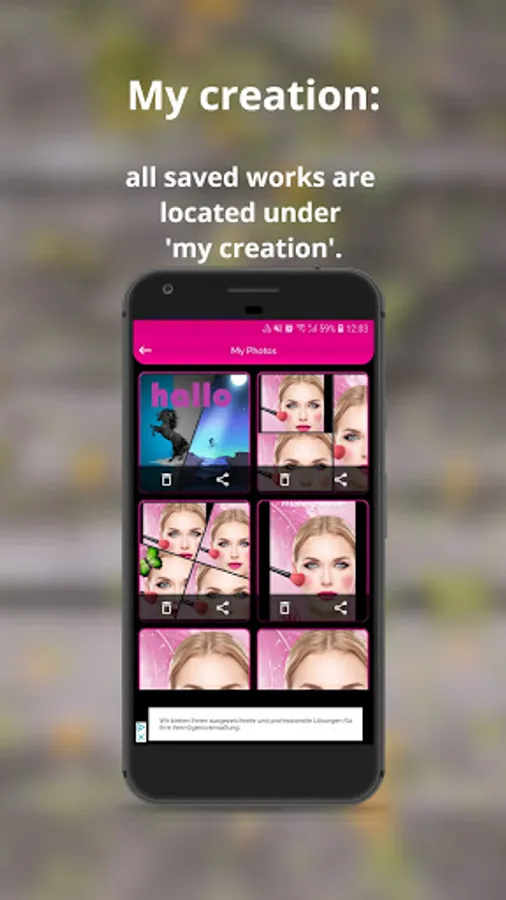 An important feature worth mentioning is the collage feature which allows the user to put many different photos cut differently together. You may share your photos on platforms such as WhatsApp, Instagram and Facebook.