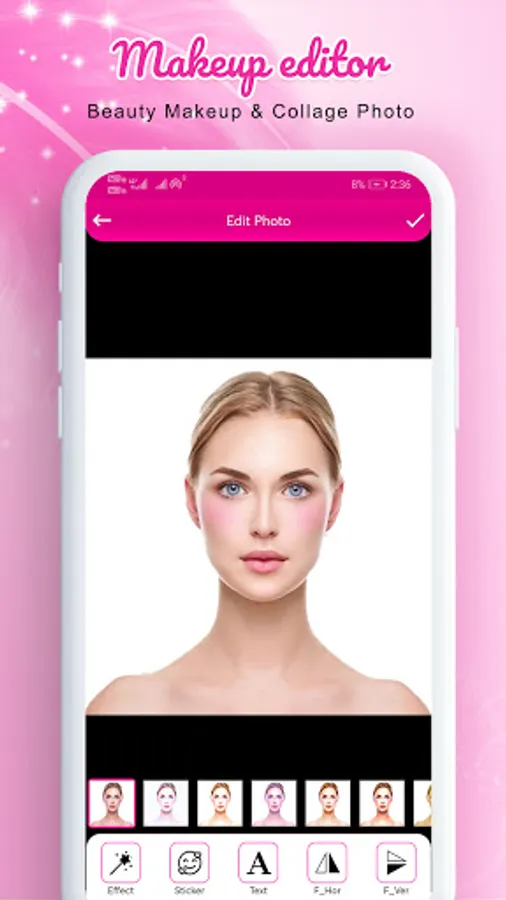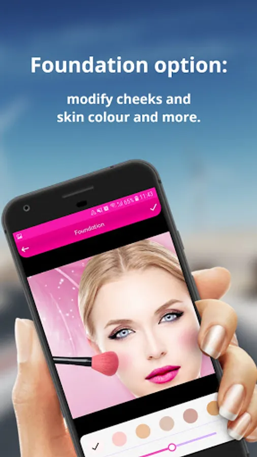 You may apply blushes to make dull looking selfies shine. You may also change the colour of your cheeks and skin foundation.