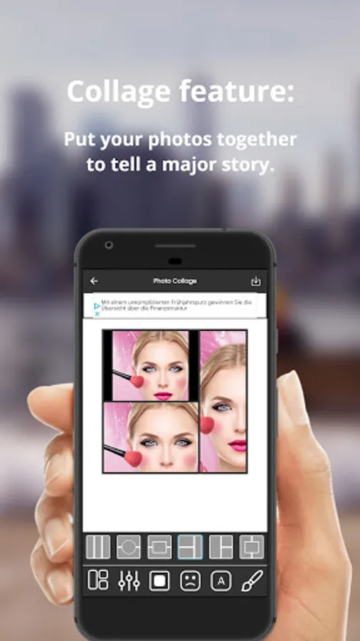 Makeup editor and collage is an App designed to give a new face look to photos of interested users. The collage portion allows users to put together several photos in different styles on the same page.