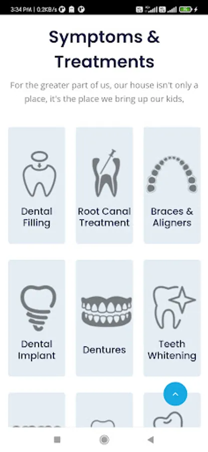 The App will showcase the services like Dental Filling, Root Canal, Braces and aligners, dental implant, dentures, Teeth Whitening, Bridges and Crowns