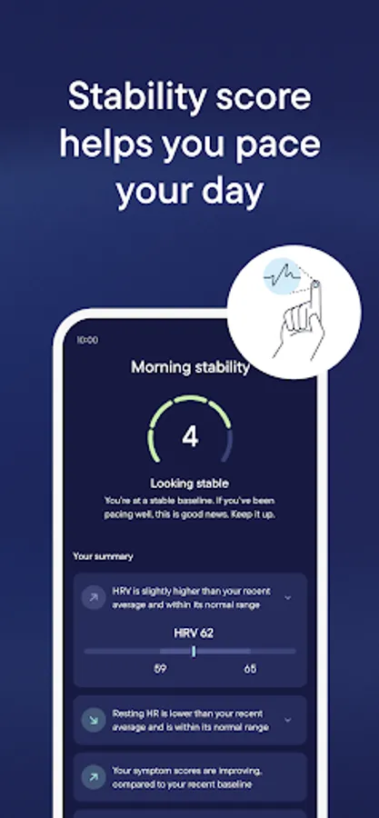 Unlike fitness trackers, Visible is designed for rest and pacing, not workouts and exercise. Track your activity levels, symptoms, fatigue, medication, crashes, heart rate, HRV, and more.