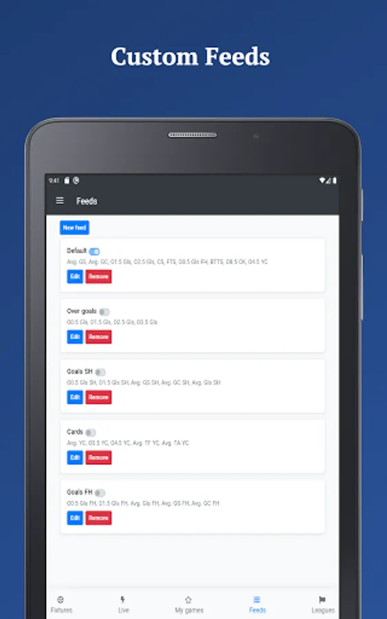 Custom Feeds - Create unlimited feeds to see only the stats important to you. If you want to see only stats for goals on your home page you can build your goals feed.