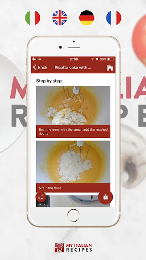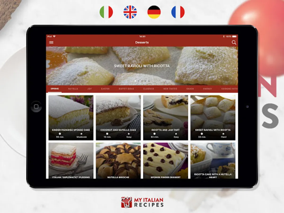 You can download this app on your shartphone or tablet. Open it, browse it and use it while you cook: all the recipes are so easy to follow! Browse the App searching some recipes by name or by category. Don't forget that our Apps are completely Ads free. If you like this specific App, click up left and download the others of our series.