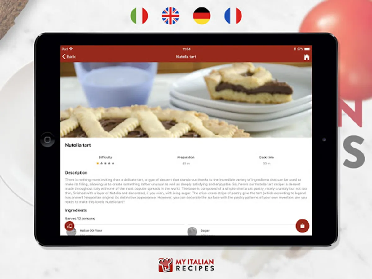 You can download this app on your shartphone or tablet. Open it, browse it and use it while you cook: all the recipes are so easy to follow! Browse the App searching some recipes by name or by category. Don't forget that our Apps are completely Ads free. If you like this specific App, click up left and download the others of our series.