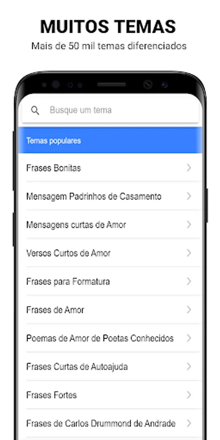 • More than 50 thousand categories, find categories for all occasions, good morning, good afternoon, good night, indirect for crush, relationships, love, friends, friendship, quotes, funny and much more.