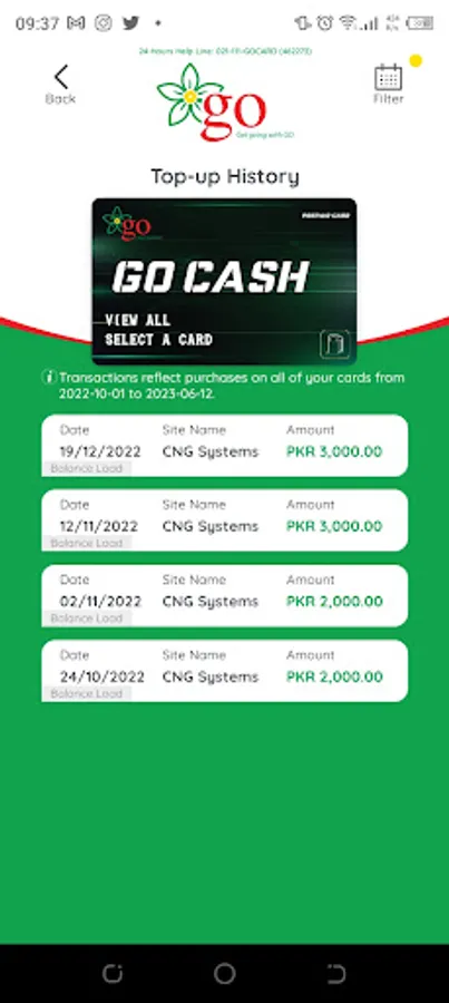 “GO connect” connects you to the digital payment solutions, uploading balances and viewing the complete statement of your balance of your fuel card in just one click. Now you can transfer the balance of the fuel from one card to the other. Avail the loyalty points and redeem them right away. Check the promotion offers and avail them in just one click. Track your nearest retail outlet by using the navigator.