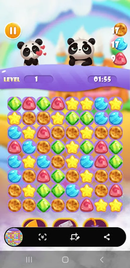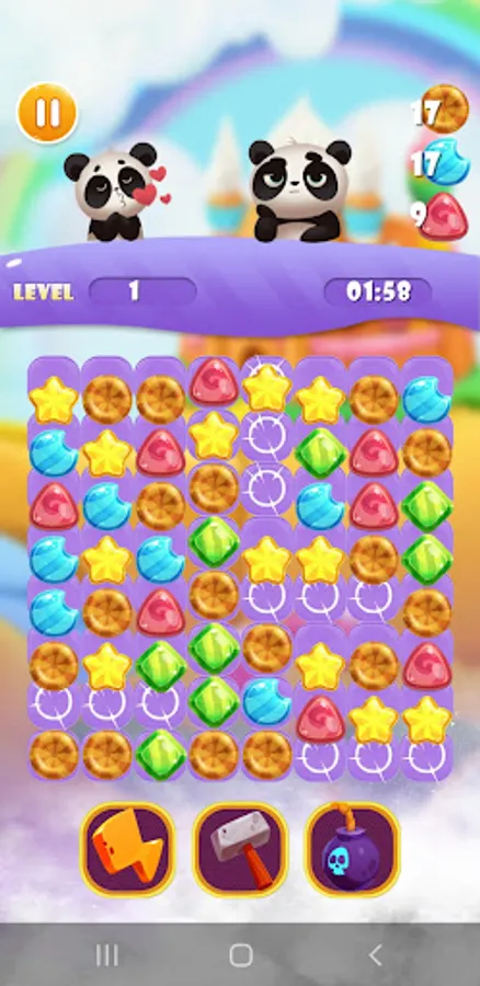The game is of the classic Match 3 type and includes many levels and puzzles
