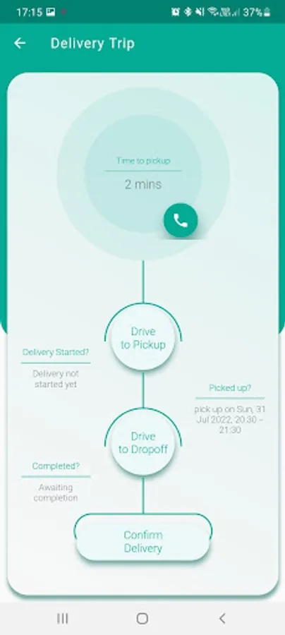 The app enables drivers to execute the following stages of the goods delivery process flow: