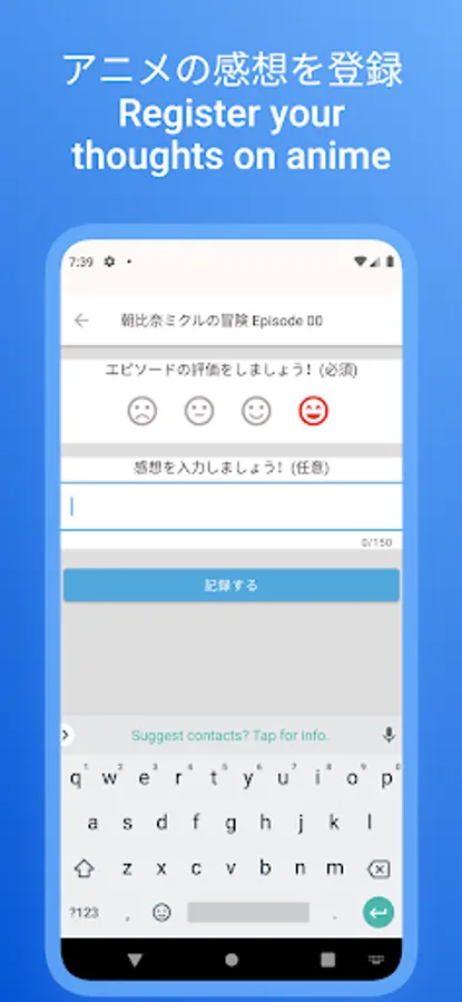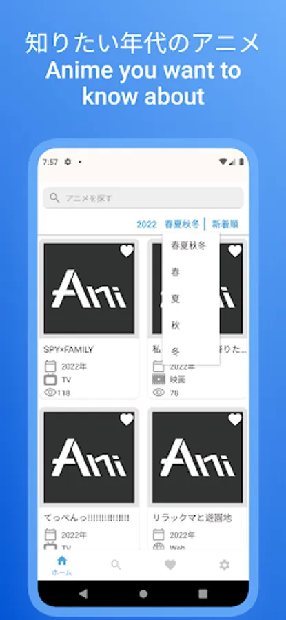 It is a convenient app about anime that you can easily get information about anime and record your own impressions!