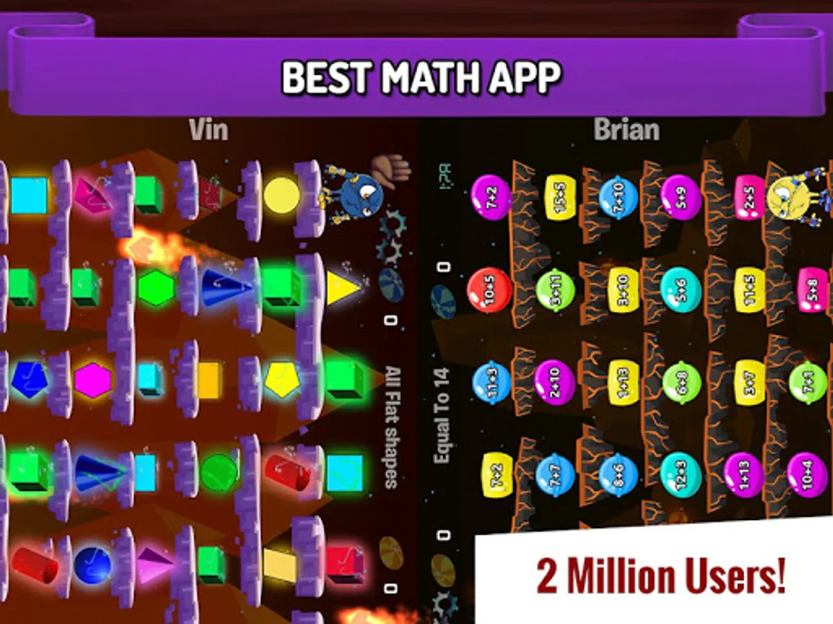 From shapes (both 3d and 2d) for younger kids, to decimals for grade 5 kids, this math combat game is fun and challenging for kids from KG to Grade 5.