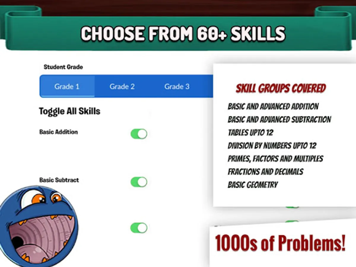 Kids will practice all arithmetic facts from Grade K to 5th, play against their friends, all while getting better and quicker at mental math!