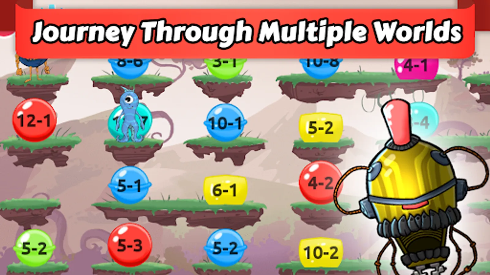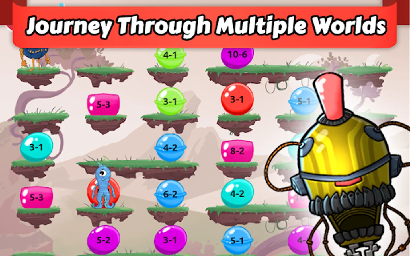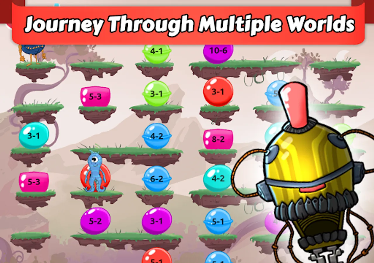 Walk your students through basic mental math and drills built into Monster Math’s interactive playing board. Unlike flash cards or simple quiz based apps, Monster Math’s core game mechanics are designed to quiz multiple skills at once and guide kids towards answers.