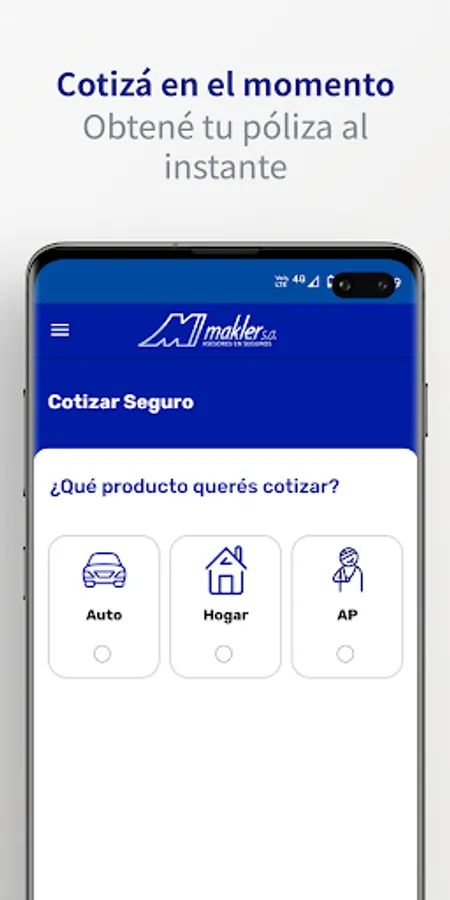 Con Makler S.A. sentite seguro, ¡estés donde estés! con esta App podrás emitir y gestionar tus seguros de un modo fácil y rápido.