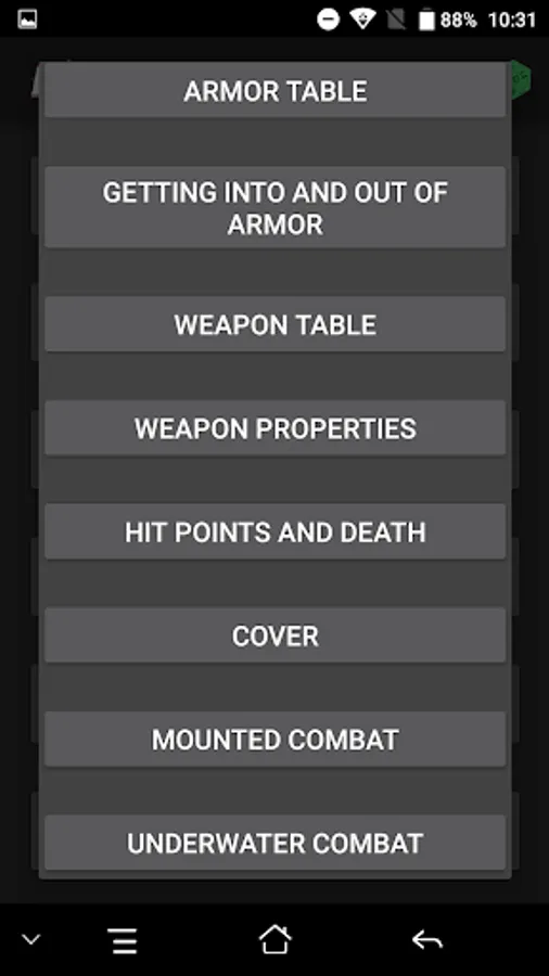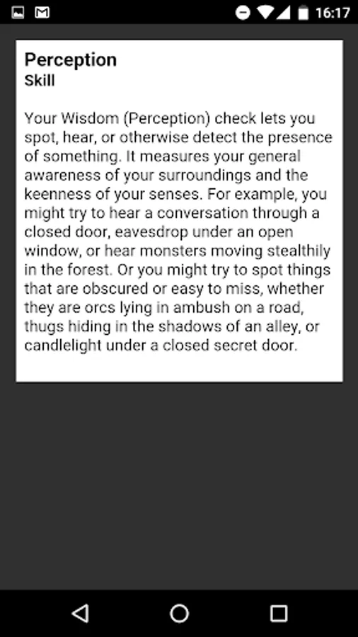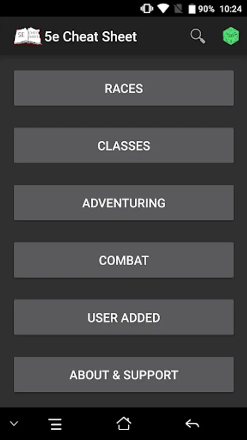 This App can be used to quickly look up keywords/abilities/terms for 5e. It was built for personal use and is simply shared freely for anyone who might find it useful. It contains some of the information released in the SRD, based on what was deemed most required. This is not aimed as a replacement for any official material.