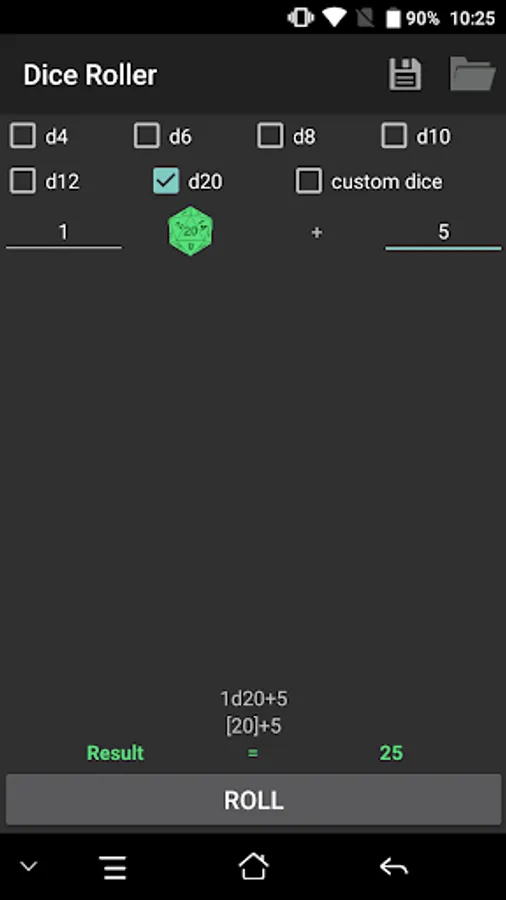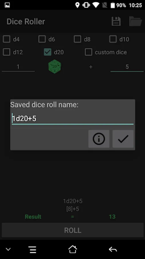 - Optional Dice Roller feature, to support the continuous development of the App, that can save dice roll combinations in different favourites lists.
