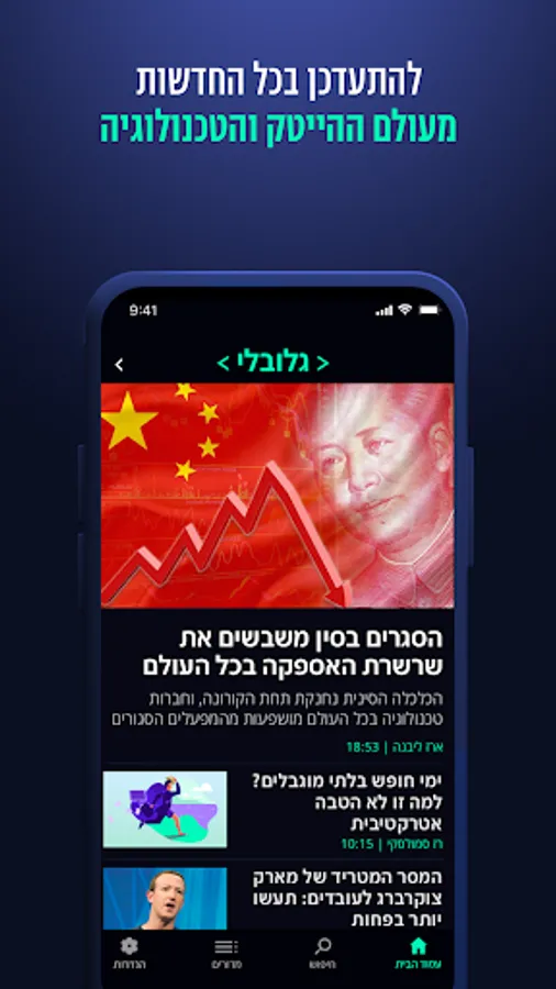 The tech12 app covers the most prominent happenings and events in the high-tech and technology arenas in Israel and around the world. The application allows you to receive updates on the news that interests you by selecting notifications and receiving flashes on the important topics. In addition, the application allows you to choose the font size so that you can receive your news on the device screen in the best, most accessible and most convenient way for you. You can also navigate the search bar according to the topics that interest you and find articles and commentaries in your favorite fields.