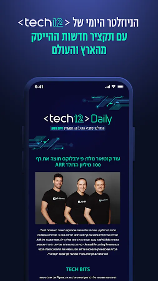 Join tech12, the website that works in high-tech, and be the first to be updated with the burning news, reports, analyzes and interpretations from the leading team of technology reporters in Israel. In the application you will be updated in real time on the important happenings in the worlds of technology and start-ups from Israel and the world, and you will receive interpretations and analyzes that will give you the full picture of what is happening in start-ups, the unicorns, the listed technology companies and the tech giants. And also: the transformations and trends in the worlds of venture capital, working conditions and salaries in high-tech, developments in the worlds of artificial intelligence and cloud computing, cyber, crypto and more.